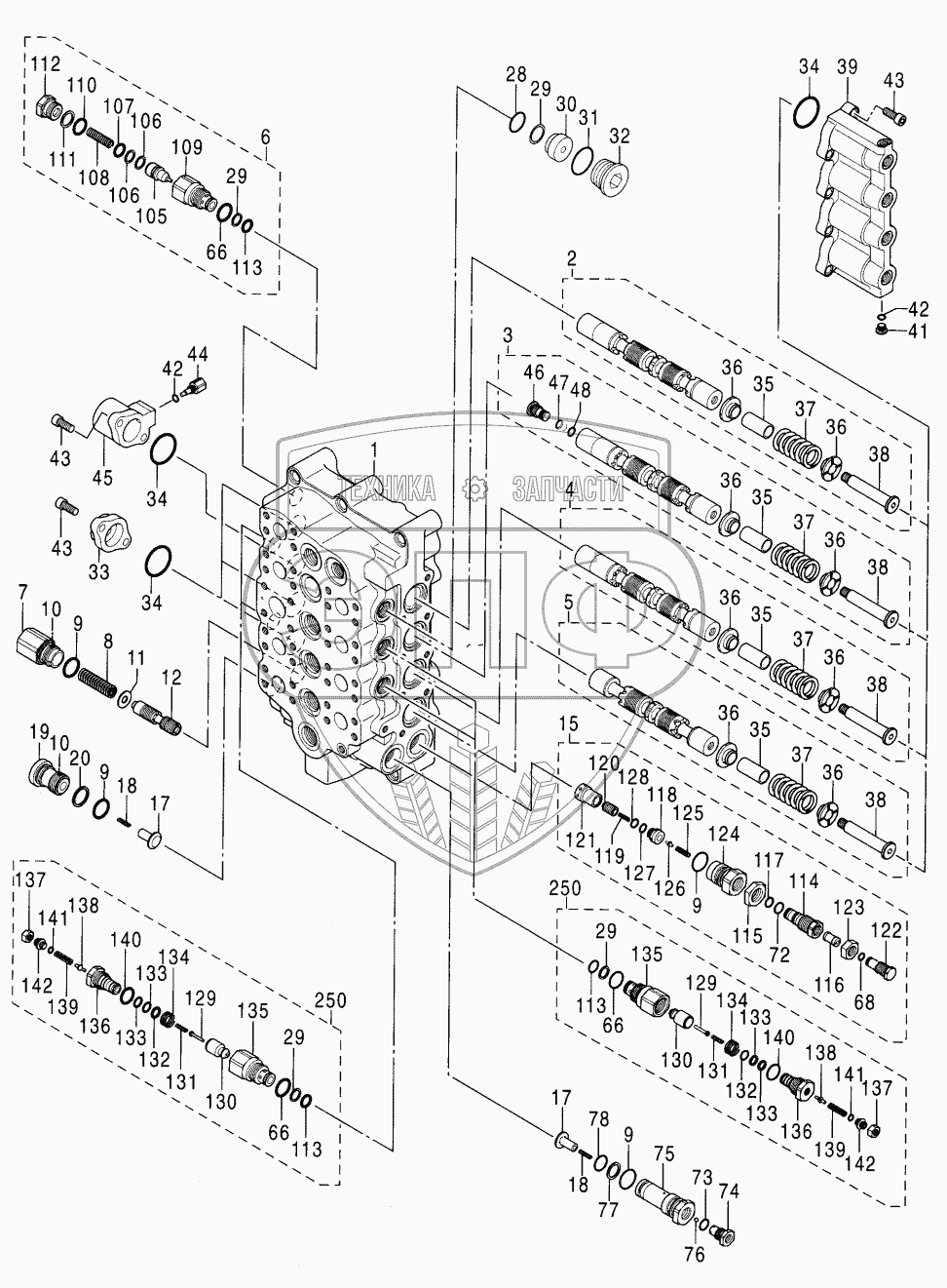 Каталог запасных частей к технике: Hitachi Компоненты ZX-450. VALVE,CONTROL (1/5)