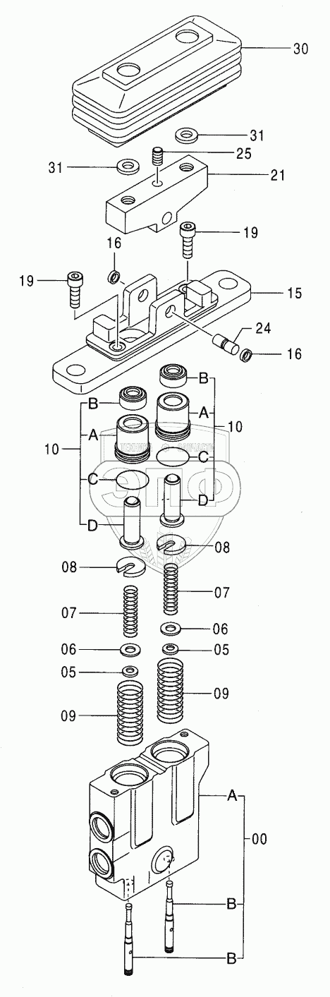Каталог запасных частей к технике: Hitachi Компоненты ZX-450. VALVE,PILOT