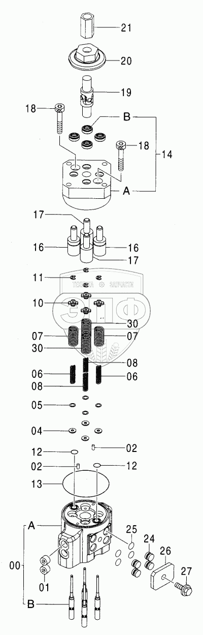 Каталог запасных частей к технике: Hitachi Компоненты ZX-450. VALVE,PILOT (FRONT & SWING)