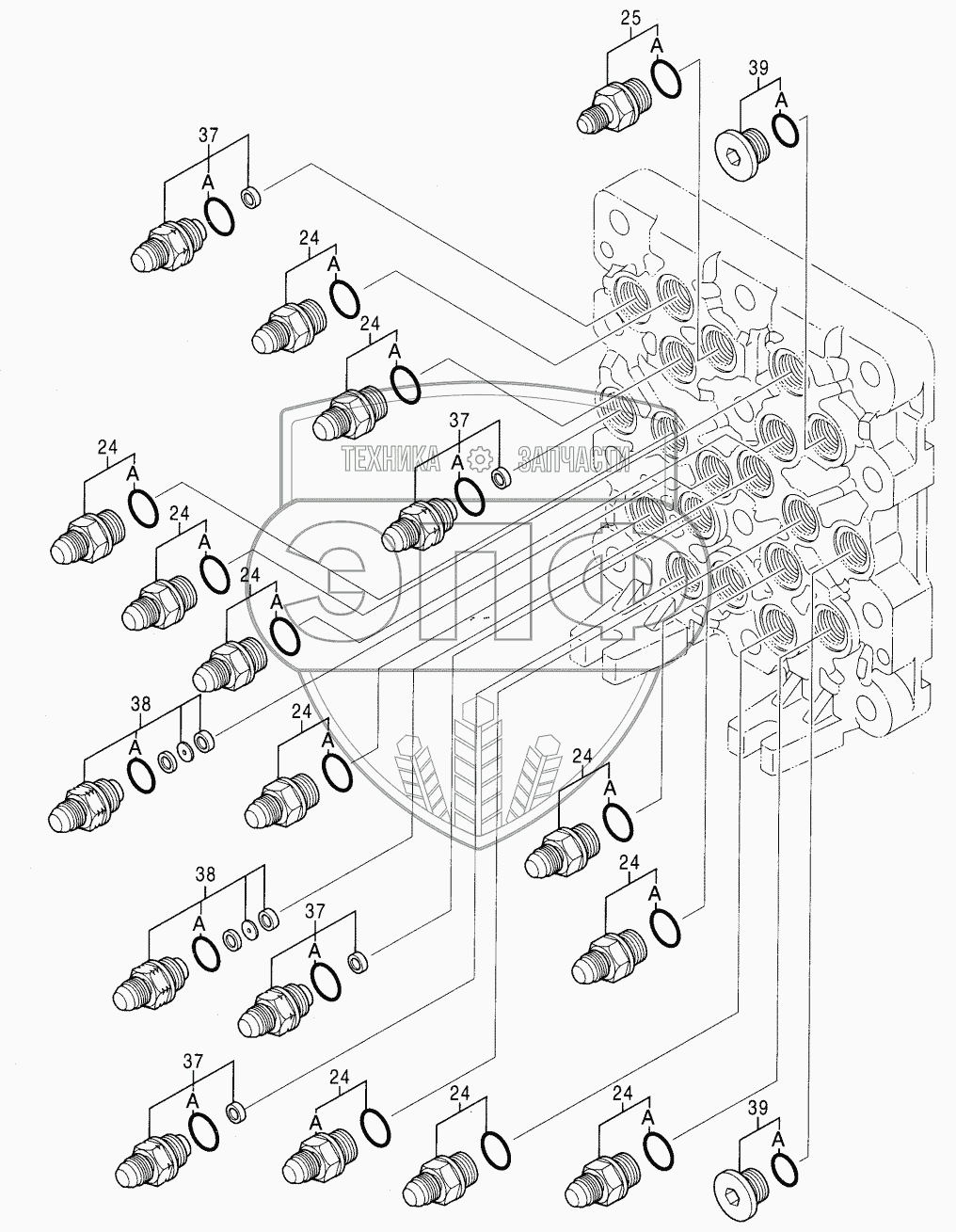 Каталог запасных частей к технике: Hitachi Компоненты ZX-450. VALVE,SHUTTLE (3/5)