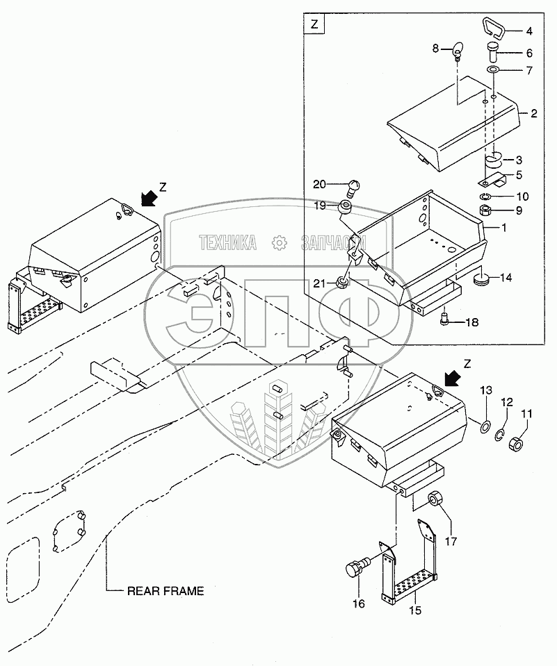 Каталог запасных частей к технике: Hitachi LX190-7/LX230-7. BATTERY BOX