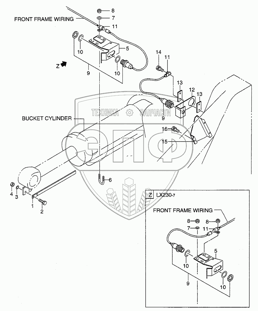 Каталог запасных частей к технике: Hitachi LX190-7/LX230-7. BUCKET LEVELER