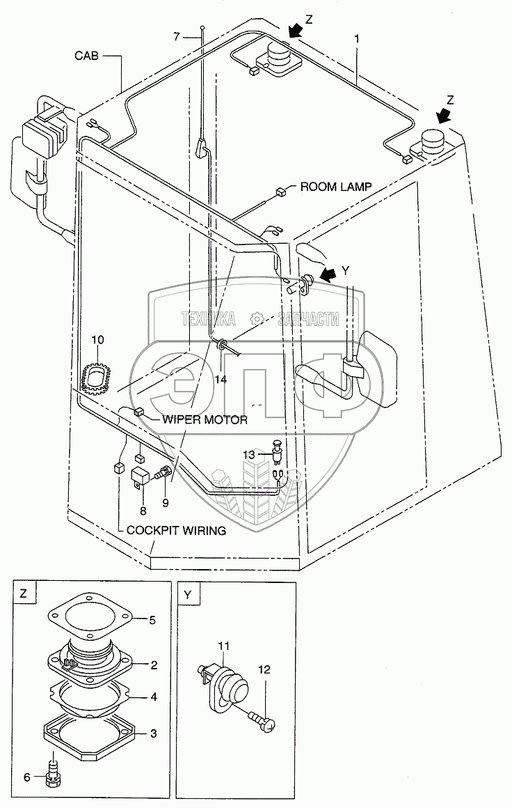Каталог запасных частей к технике: Hitachi LX190-7/LX230-7. CAB (ELECTRICAL PARTS)