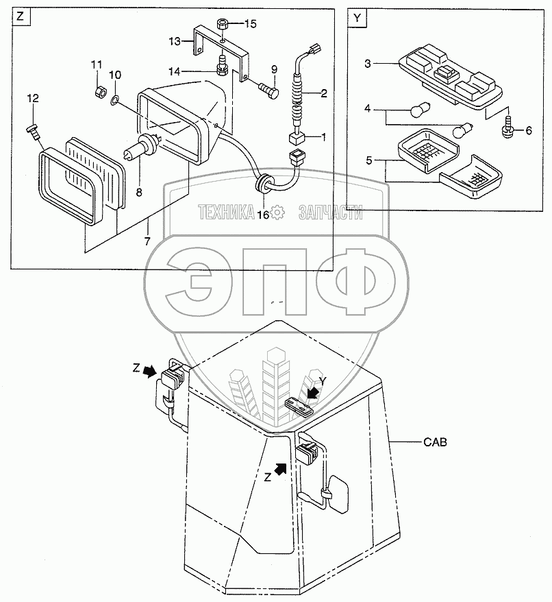 Каталог запасных частей к технике: Hitachi LX190-7/LX230-7. CAB (LAMP)