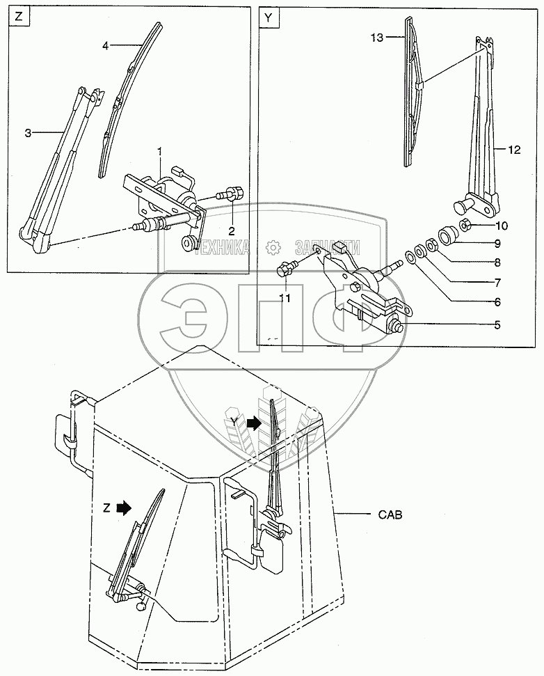 Каталог запасных частей к технике: Hitachi LX190-7/LX230-7. CAB (WIPER)