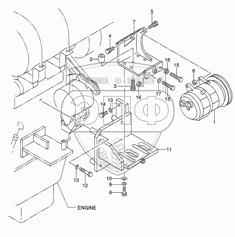 Каталог запасных частей к технике: Hitachi LX190-7/LX230-7. COMPRESSOR MOUNT