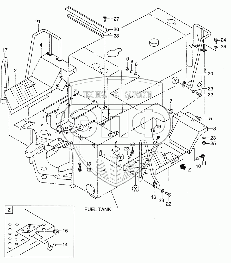 Каталог запасных частей к технике: Hitachi LX190-7/LX230-7. DECK PLATE & HANDRAIL