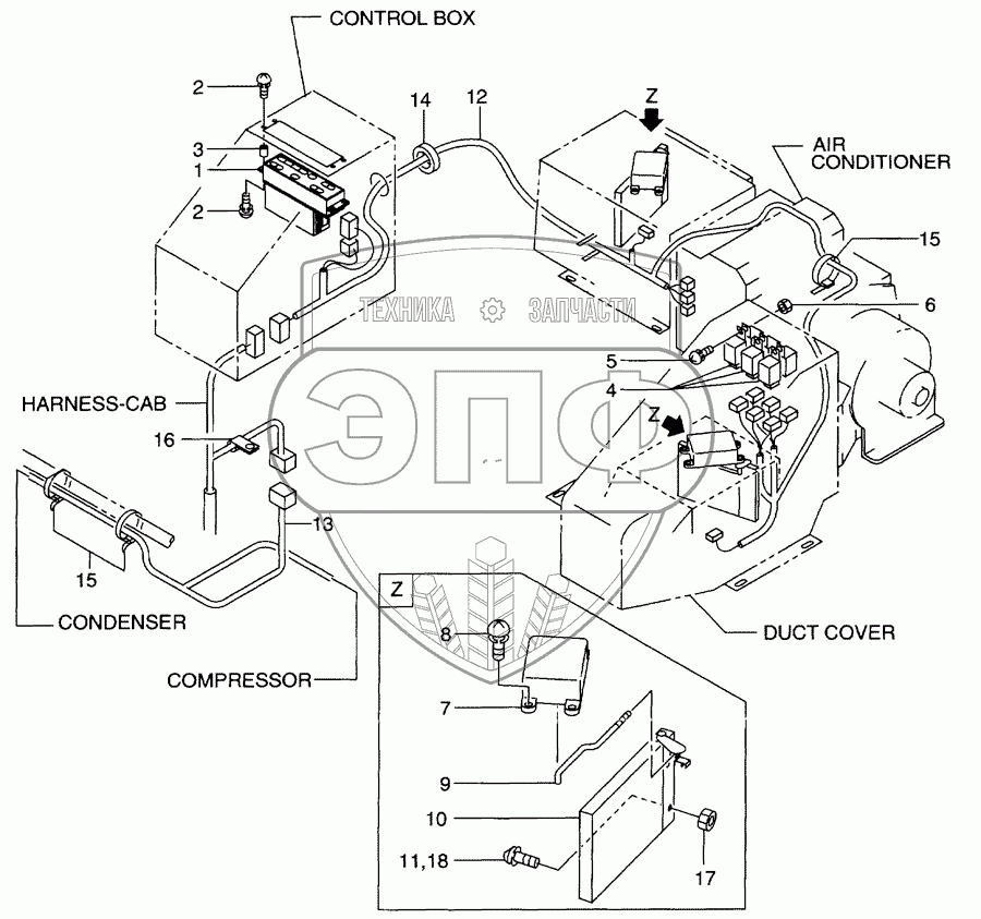 Каталог запасных частей к технике: Hitachi LX-110-7. Air conditioner (electrical parts)