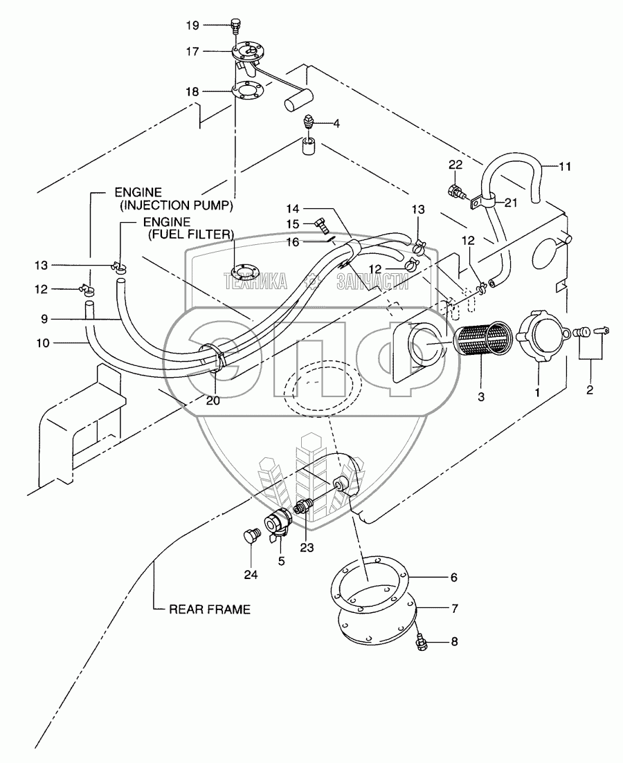Каталог запасных частей к технике: Hitachi LX-110-7. Fuel system(-2100)