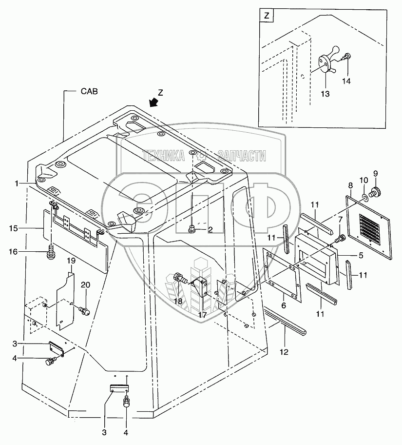 Каталог запасных частей к технике: Hitachi LX-160-7. CAB (COVER)