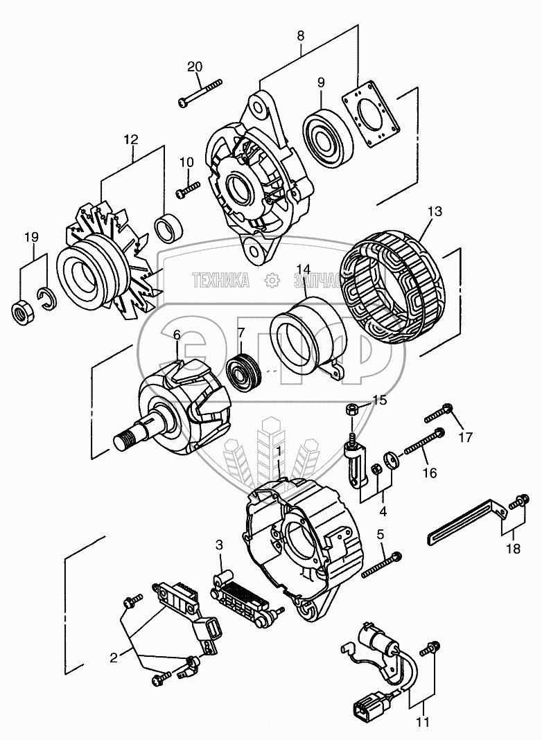 Каталог запасных частей к технике: Hitachi LX-160-7. GENERATOR (INNER PARTS)