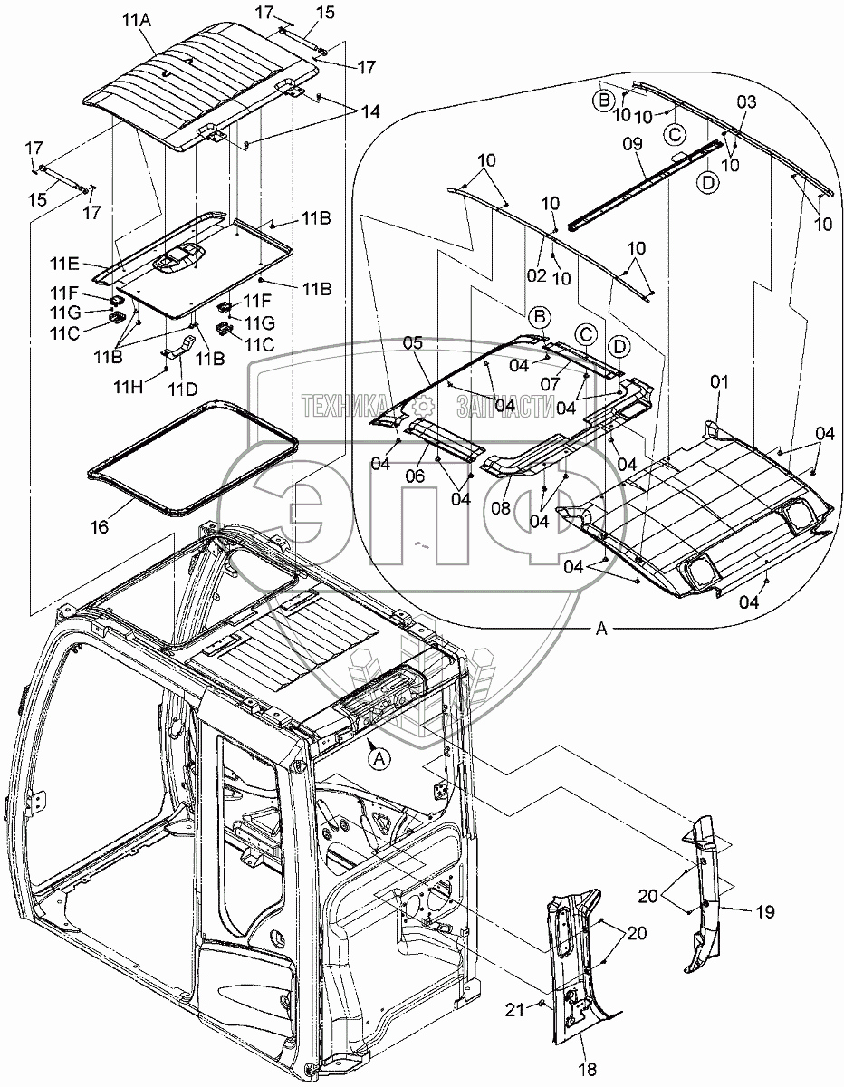 Каталог запасных частей к технике: Hitachi ZAXIS 330-5G. CAB (6)