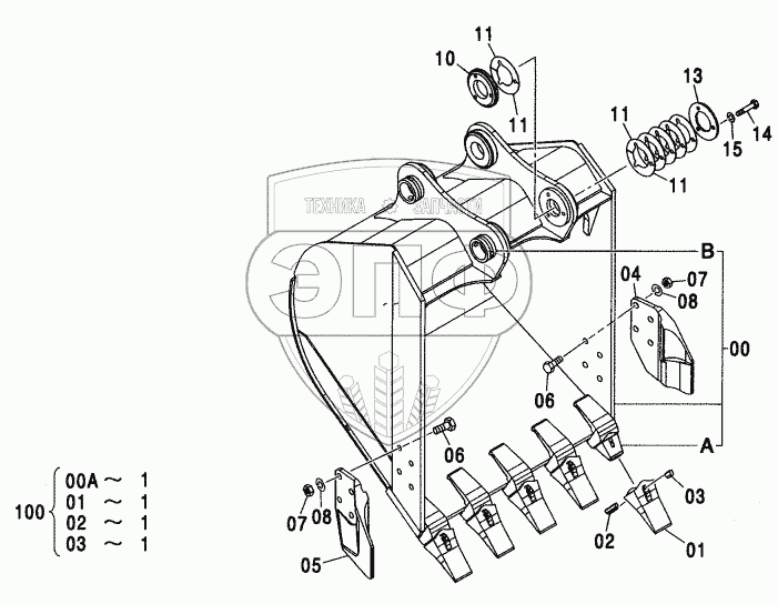 Каталог запасных частей к технике: Hitachi ZX-110. BUCKET 0.59 (JIS 94)