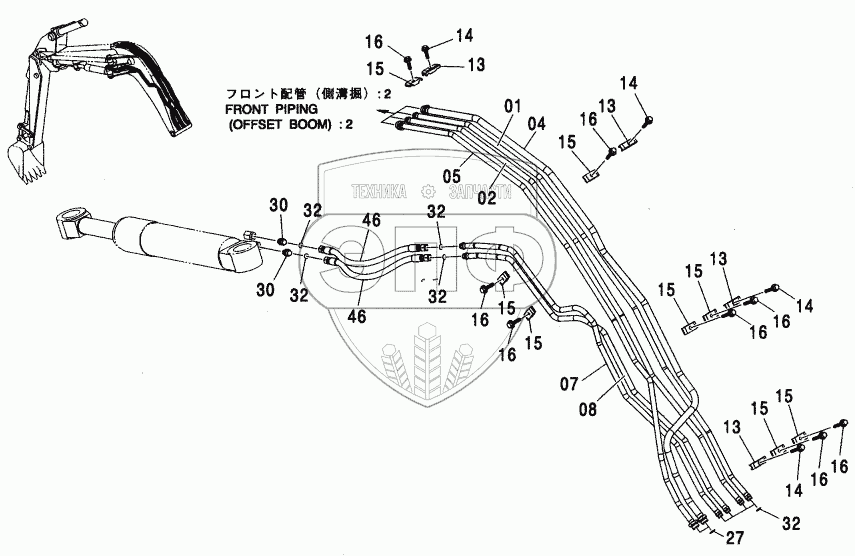 Каталог запасных частей к технике: Hitachi ZX-110. FRONT PIPING (OFFSET BOOM)