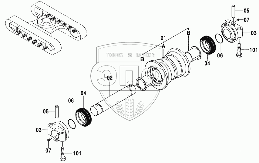 Каталог запасных частей к технике: Hitachi ZX-110. LOWER ROLLER (M)