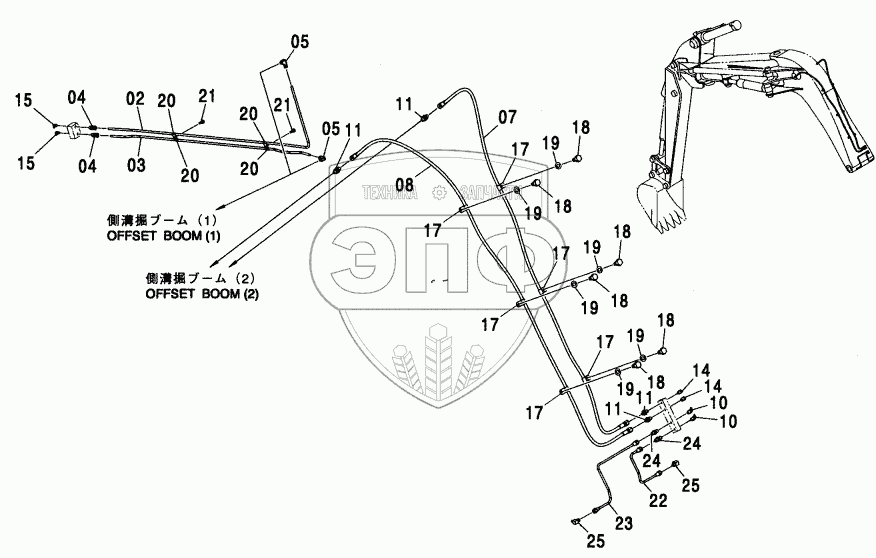 Каталог запасных частей к технике: Hitachi ZX-110. LUBRICATE PIPING (OFFSET BOOM)