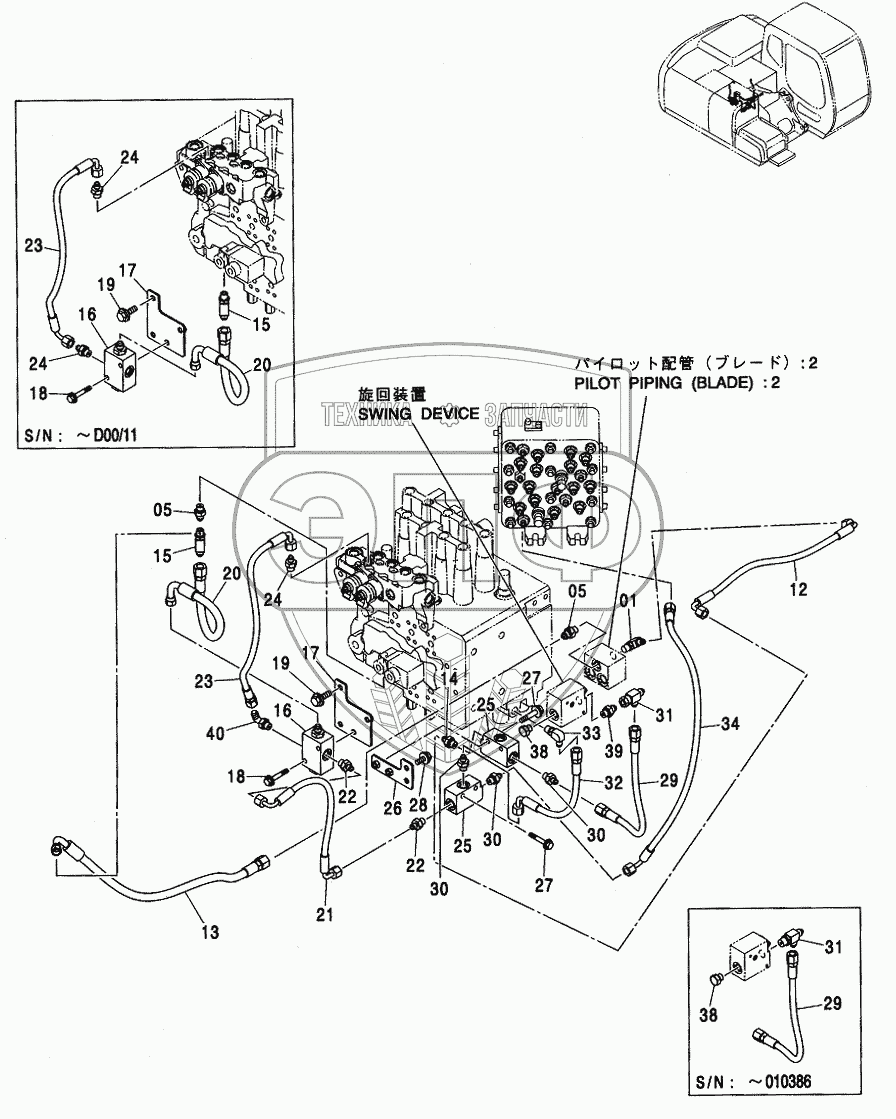 Каталог запасных частей к технике: Hitachi ZX-110. PILOT PIPING (BLADE)
