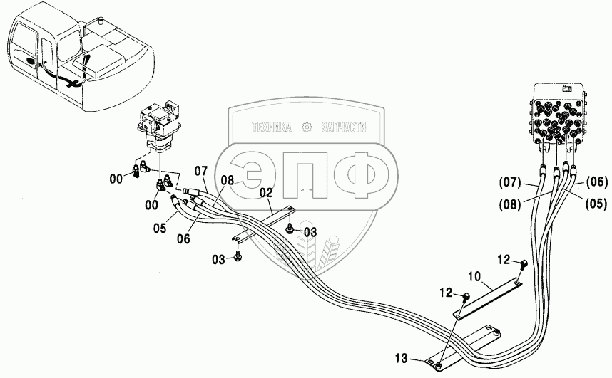 Каталог запасных частей к технике: Hitachi ZX-110. PILOT PIPING (E)