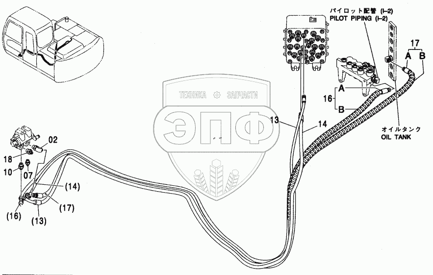 Каталог запасных частей к технике: Hitachi ZX-110. PILOT PIPING (J)