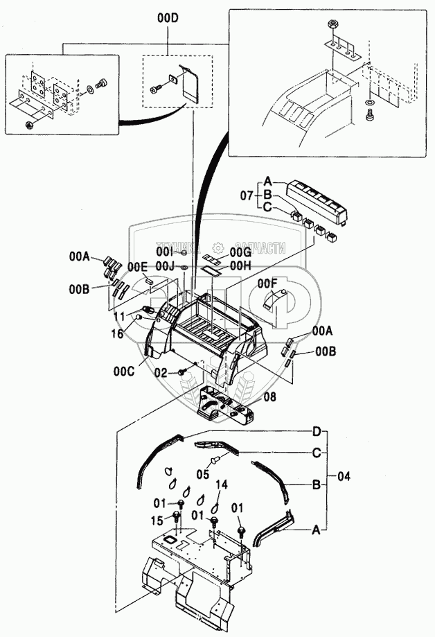 Каталог запасных частей к технике: Hitachi ZX-110. REAR BOX (AIR-CON.)