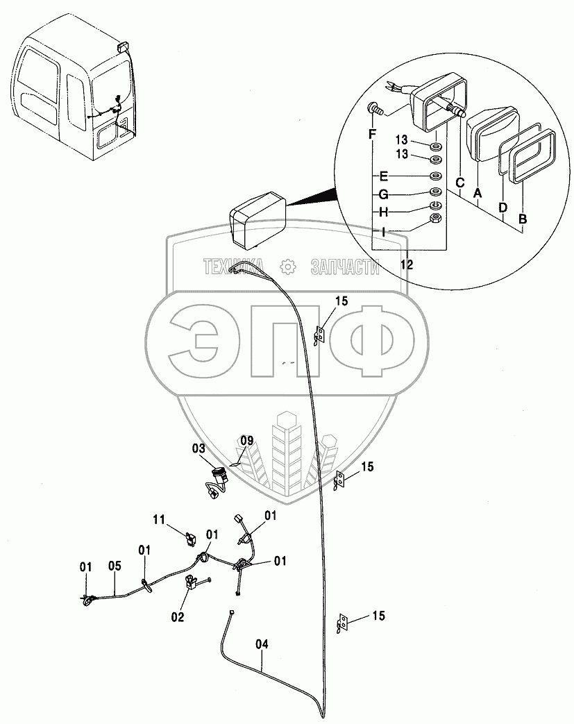 Каталог запасных частей к технике: Hitachi ZX-110. REAR HEAD LAMP (STD)