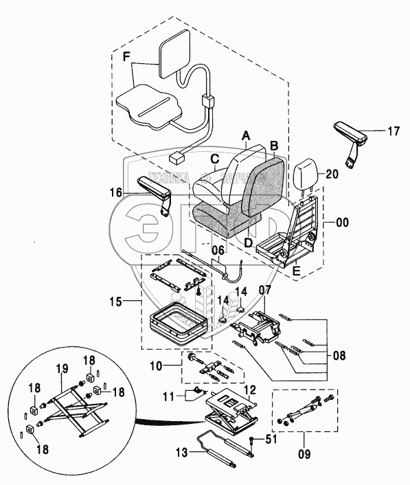 Каталог запасных частей к технике: Hitachi ZX-110. SUSPENSION SEAT (WITH HEATER)