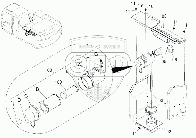 Каталог запасных частей к технике: Hitachi ZX-160W. AIR CLEANER
