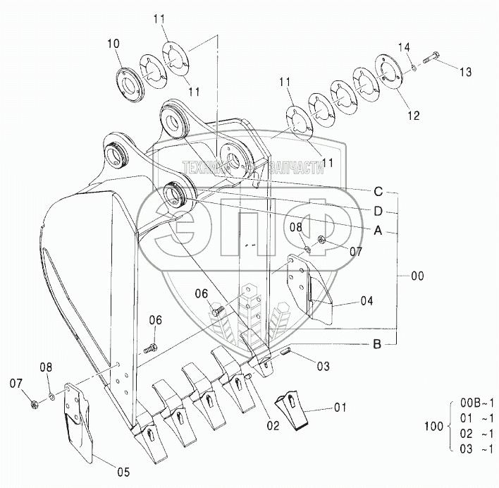 Каталог запасных частей к технике: Hitachi ZX-160W. BUCKET 0.60 (JIS 94)