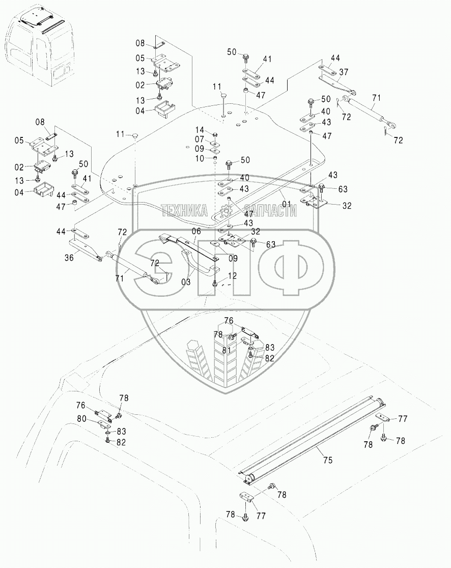 Каталог запасных частей к технике: Hitachi ZX-160W. CAB (6)
