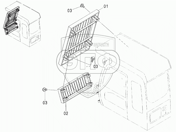Каталог запасных частей к технике: Hitachi ZX-160W. CAB GUARD