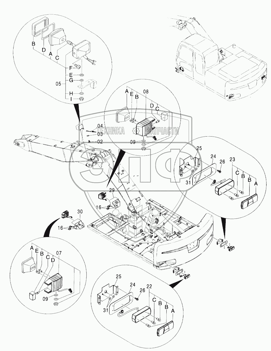 Каталог запасных частей к технике: Hitachi ZX-160W. ELECTRIC PARTS (B)