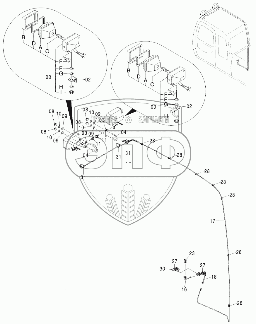 Каталог запасных частей к технике: Hitachi ZX-160W. FRONT HEAD LAMP (2 LAMP)
