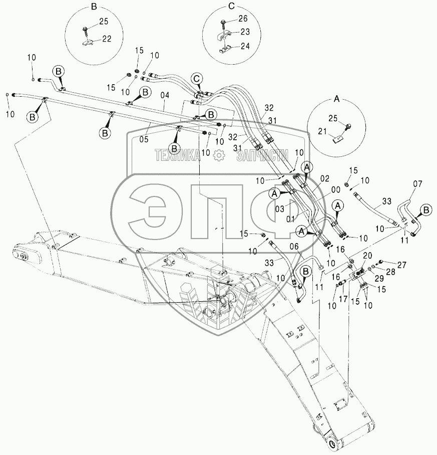 Каталог запасных частей к технике: Hitachi ZX-160W. FRONT PIPING (2P-B00M)