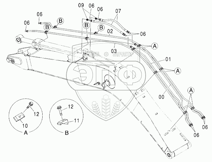 Каталог запасных частей к технике: Hitachi ZX-160W. FRONT PIPING (MONO BOOM)