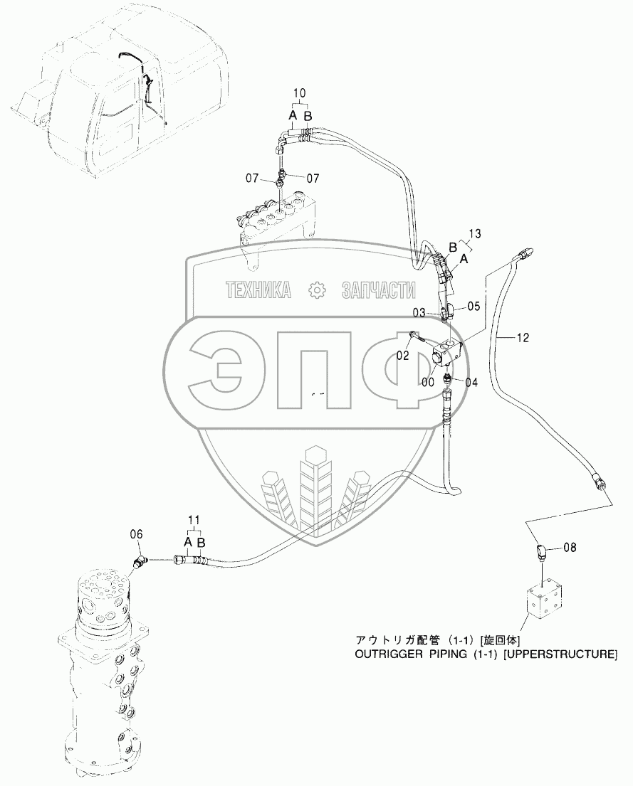 Каталог запасных частей к технике: Hitachi ZX-160W. OUTRIGGER PIPING