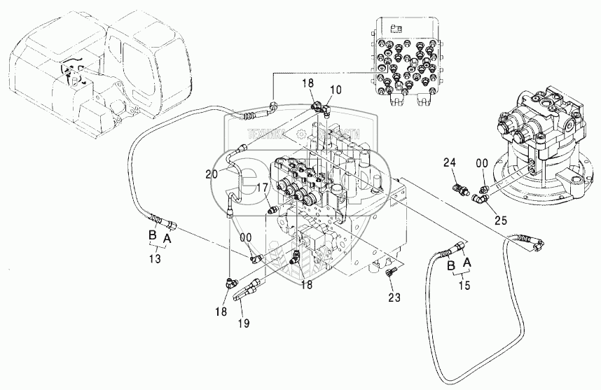 Каталог запасных частей к технике: Hitachi ZX-160W. PILOT PIPING (D-1)