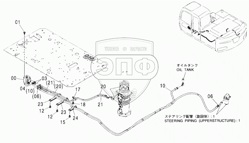 Каталог запасных частей к технике: Hitachi ZX-160W. STEERING PIPING (UPPERSTRUCTURE)