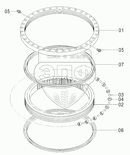 Каталог запасных частей к технике: Hitachi ZX-160W. SWING BEARING