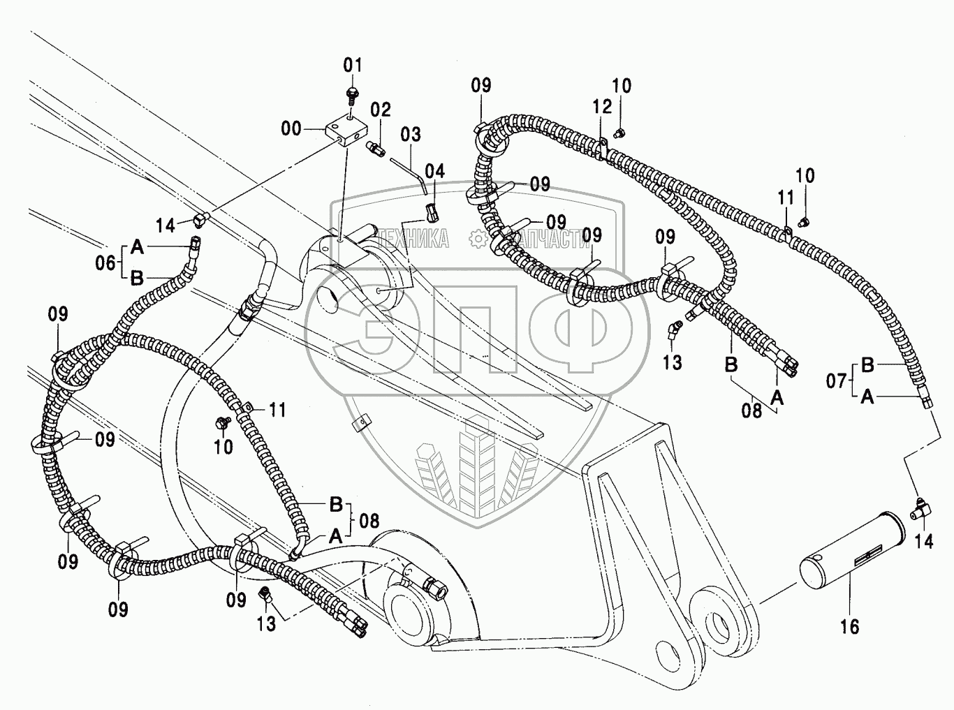 Каталог запасных частей к технике: Hitachi ZX-200. AUTO. LUBRICATE PIPING (ARM)