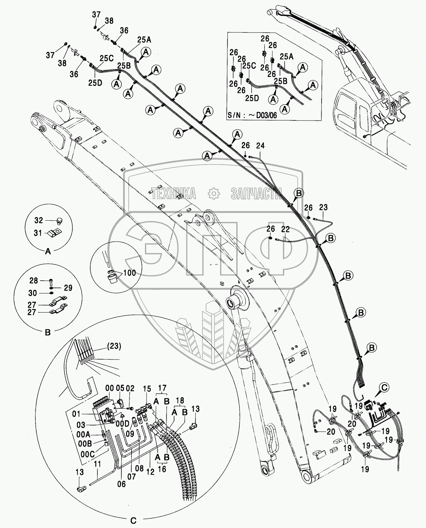 Каталог запасных частей к технике: Hitachi ZX-200. AUTO. LUBRICATE PIPING (BOOM)