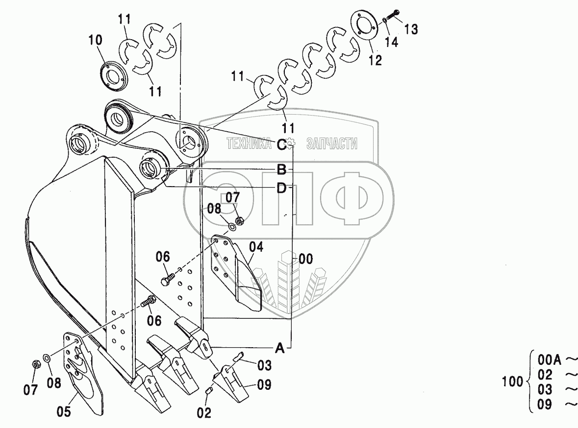 Каталог запасных частей к технике: Hitachi ZX-200. BUCKET 0.51 (JIS 94)