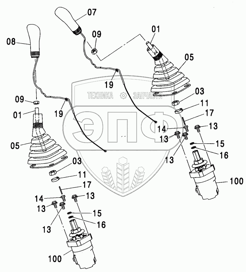 Каталог запасных частей к технике: Hitachi ZX-200. CONTROL LEVER (FRONT, SWING)