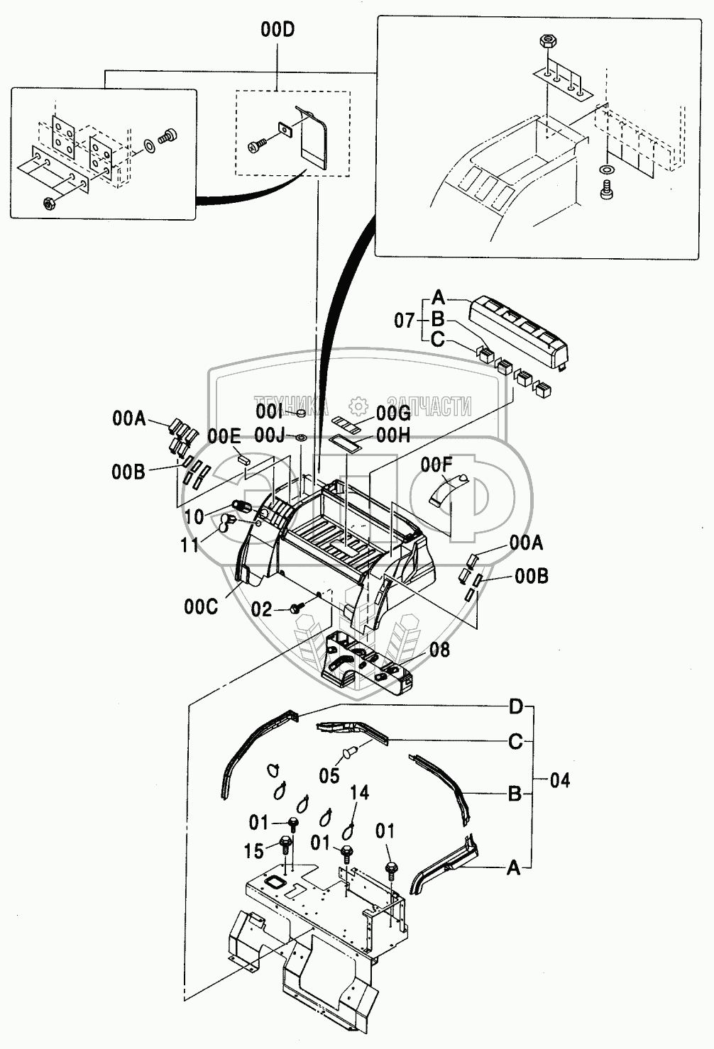 Каталог запасных частей к технике: Hitachi ZX-200. REAR BOX (12V POWER SUPPLY)