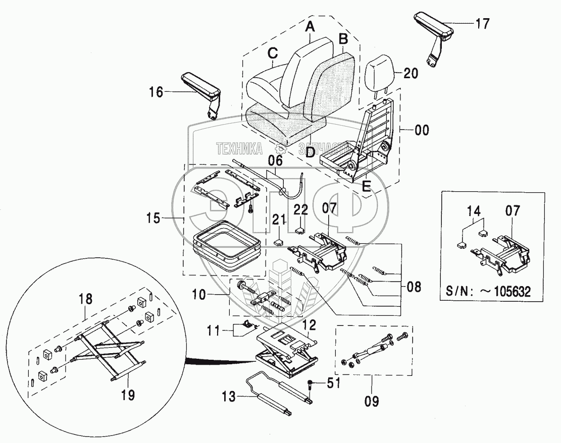 Каталог запасных частей к технике: Hitachi ZX-200. SUSPENSION SEAT