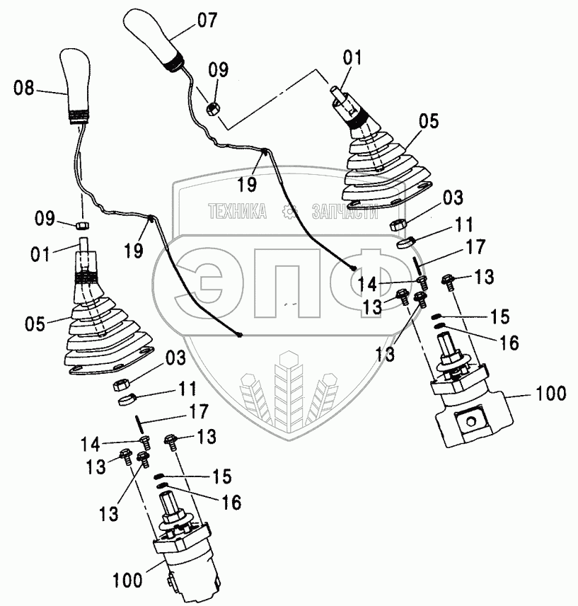 Каталог запасных частей к технике: Hitachi ZX-230. CONTROL LEVER (FRONT, SWING)
