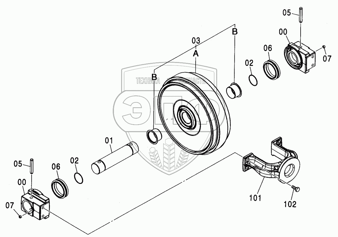 Каталог запасных частей к технике: Hitachi ZX-230. FRONT IDLER (EU2)