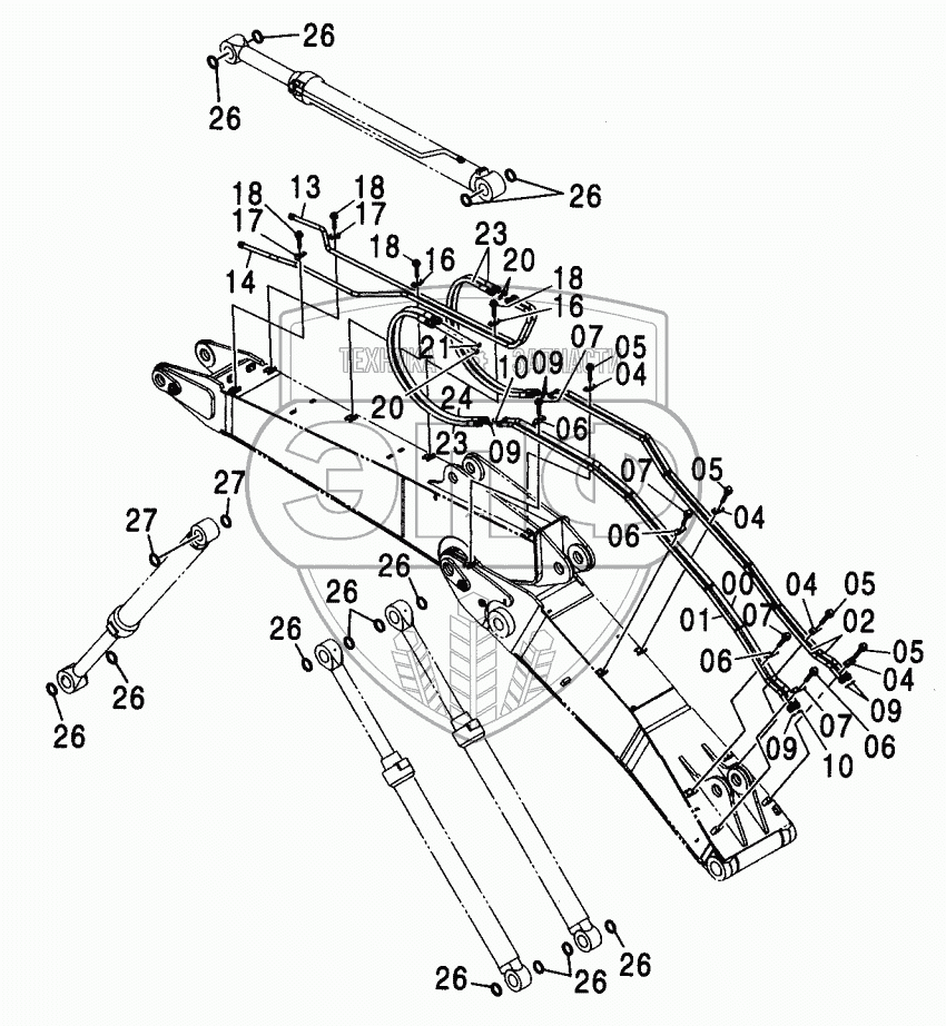 Каталог запасных частей к технике: Hitachi ZX-230. FRONT PIPING (2P-B00M)<250>