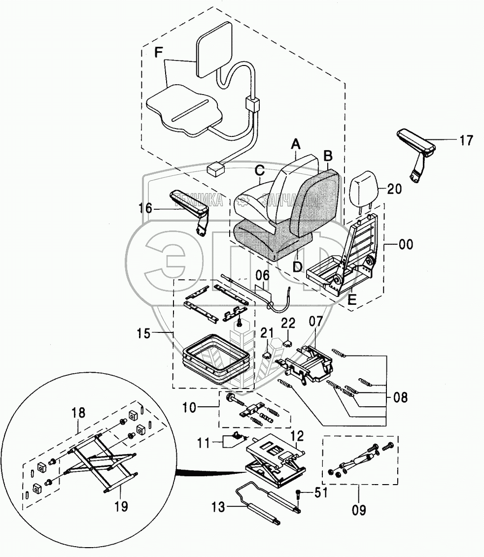 Каталог запасных частей к технике: Hitachi ZX-230. SUSPENSION SEAT (WITH HEATER)<250>
