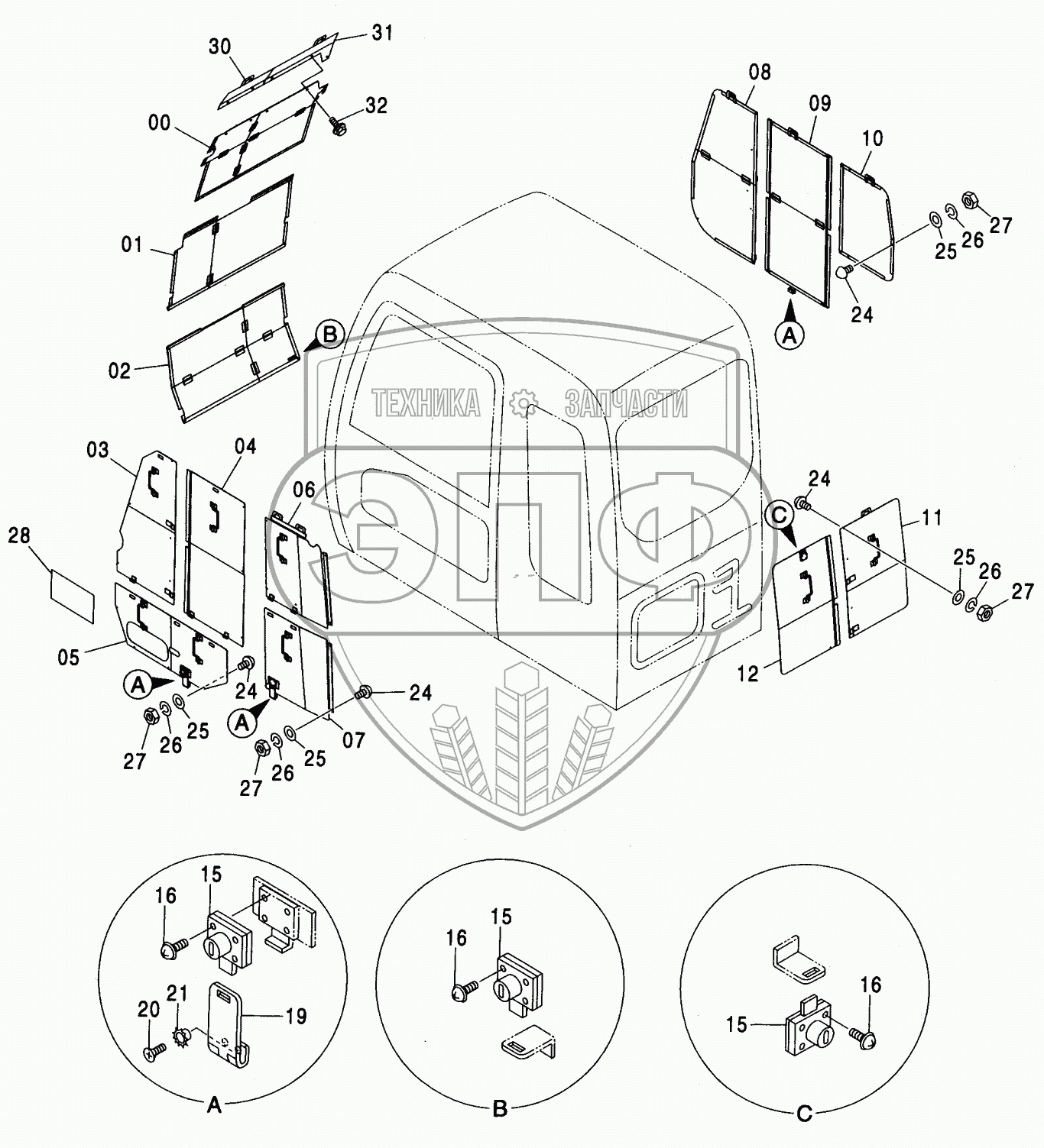 Каталог запасных частей к технике: Hitachi ZX-230. WINDOW GUARD <250>