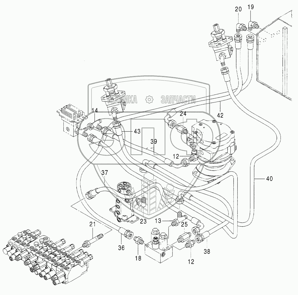 Каталог запасных частей к технике: Hitachi ZX-25. PILOT PIPING (1-2)